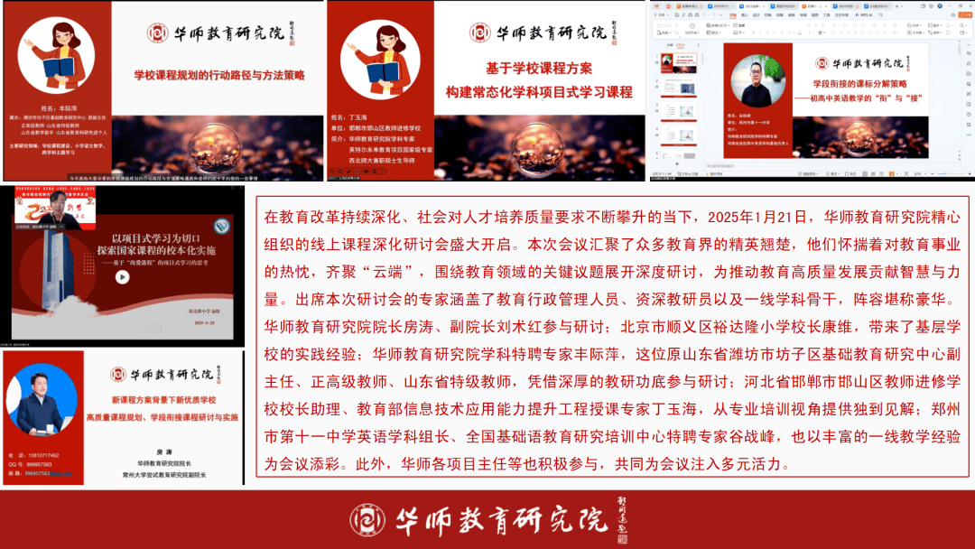 举办华师教育研究院帮力区域/学校新课标、材集中培训,华师帮力区域或学校新课标下2025年春季/秋季材大单位设想集中,权利教育课程方案和课程尺度日常修订版(2022年版2025年修订)和通俗高中课程方案和课程尺度日常修订版(2017年版2025年修订)解读培训等勾当20余场。