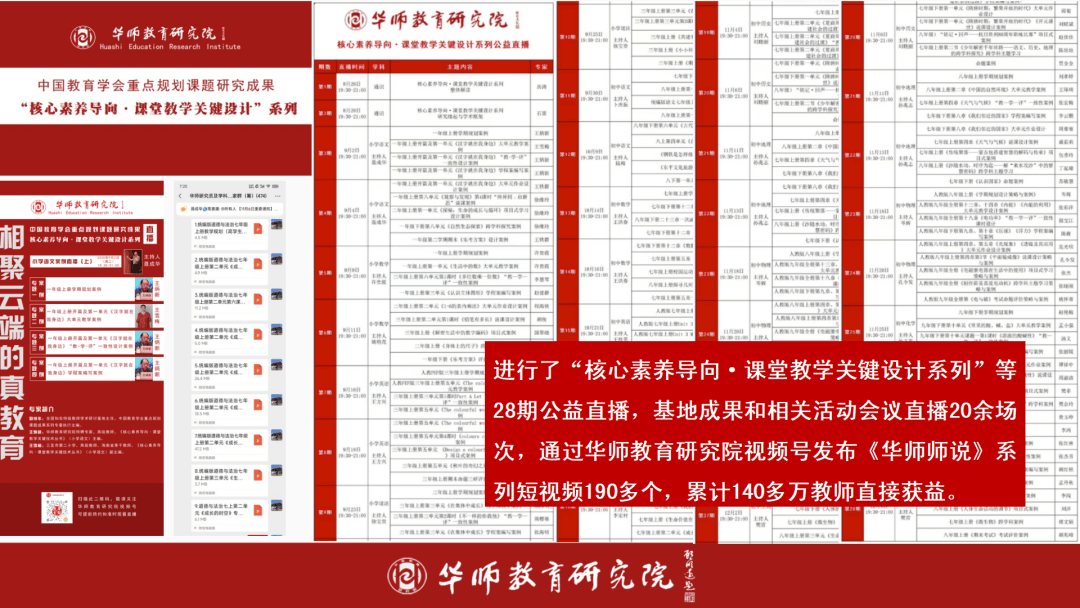进行了“焦点素养导向·讲堂讲授环节设想系列”等28期公益曲播,和相关勾当会议曲播20余场次,通过华师教育研究院视频号发布《华师师说》系列短视频190多个,累计140多万教师间接获益。