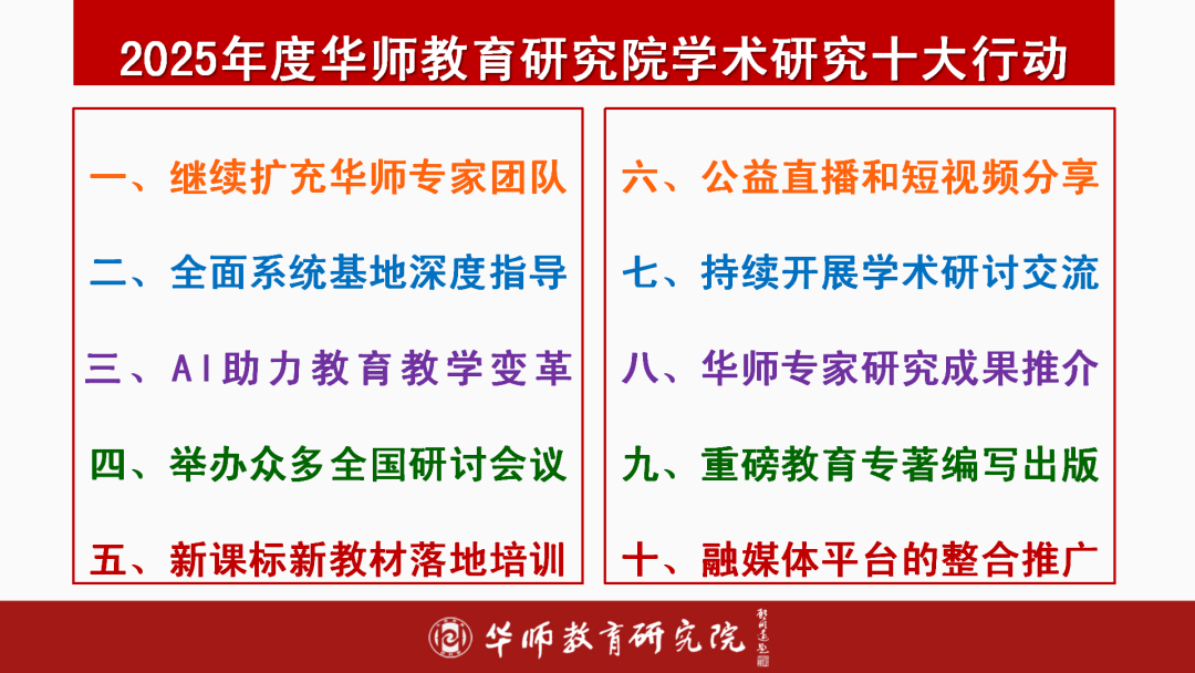 正在2025年里,我们是研究摸索的引领者,是使用落地的实践者,是教育变化的帮力者,全面鞭策了新课程方案、新课程尺度、新版教材的理解取落实,深度帮力了浩繁区域和学校教育变化取质量提拔。